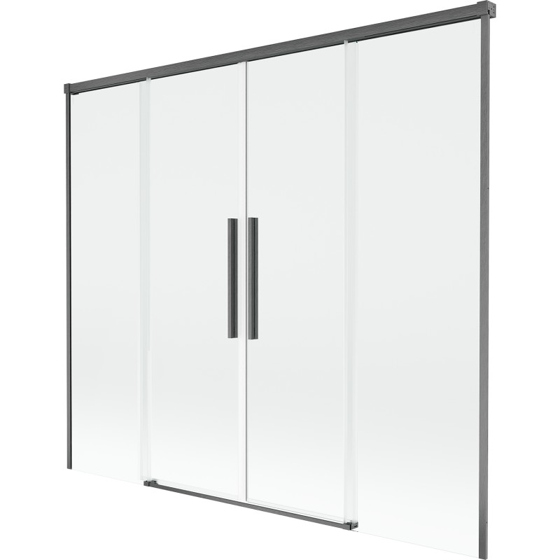 Technické údaje: Šířka: 190 cm Výška: 150 cm Typ: Dvoukřídlé Montáž: Univerzální Typ: Pohyblivé/Posuvné Typ skla: Tvrzené Barva skla: Průhledná Tloušťka skla: 8 mm Povrchová úprava: Kartáčovaná šedá Profil: Hliníkový povlak pro snadné čištění Možnost nastavení šířky Neviditelný mechanismus posuvných a dveřních otvorů Možnost naklonění dveří pro čištění sítě Magnetický proužek a elastomerové těsnění pro odvod vody Dva montážní systémy: - S profilem, který umožňuje vyrovnání nerovností stěn - Bez profilu v případě dokonale rovných stěn