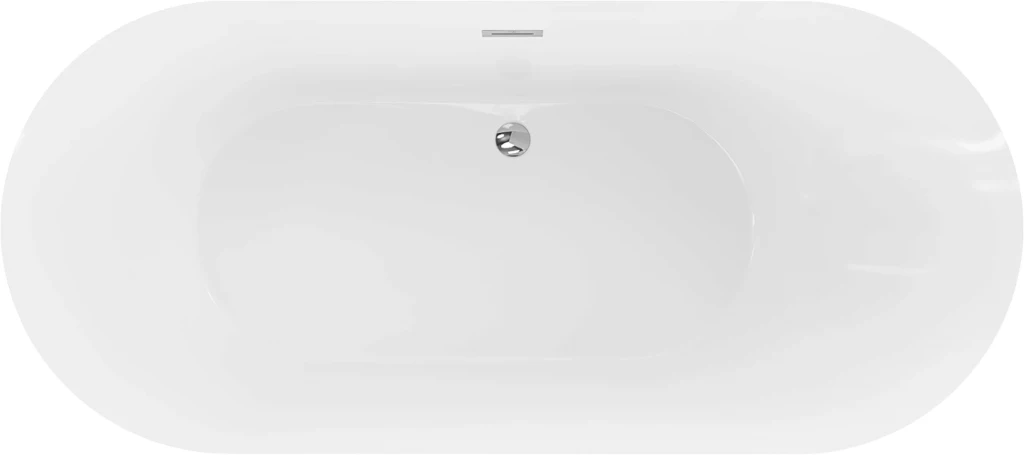 Volně stojící oválná akrylátová vana série ROXY od výrobce MEXEN s přepadem a umístěném odpadu na středu vany.