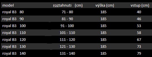 | Stavební šířka | 110, 111, 112, 113, 114, 115, 116, 117, 118, 119, 120 cm |