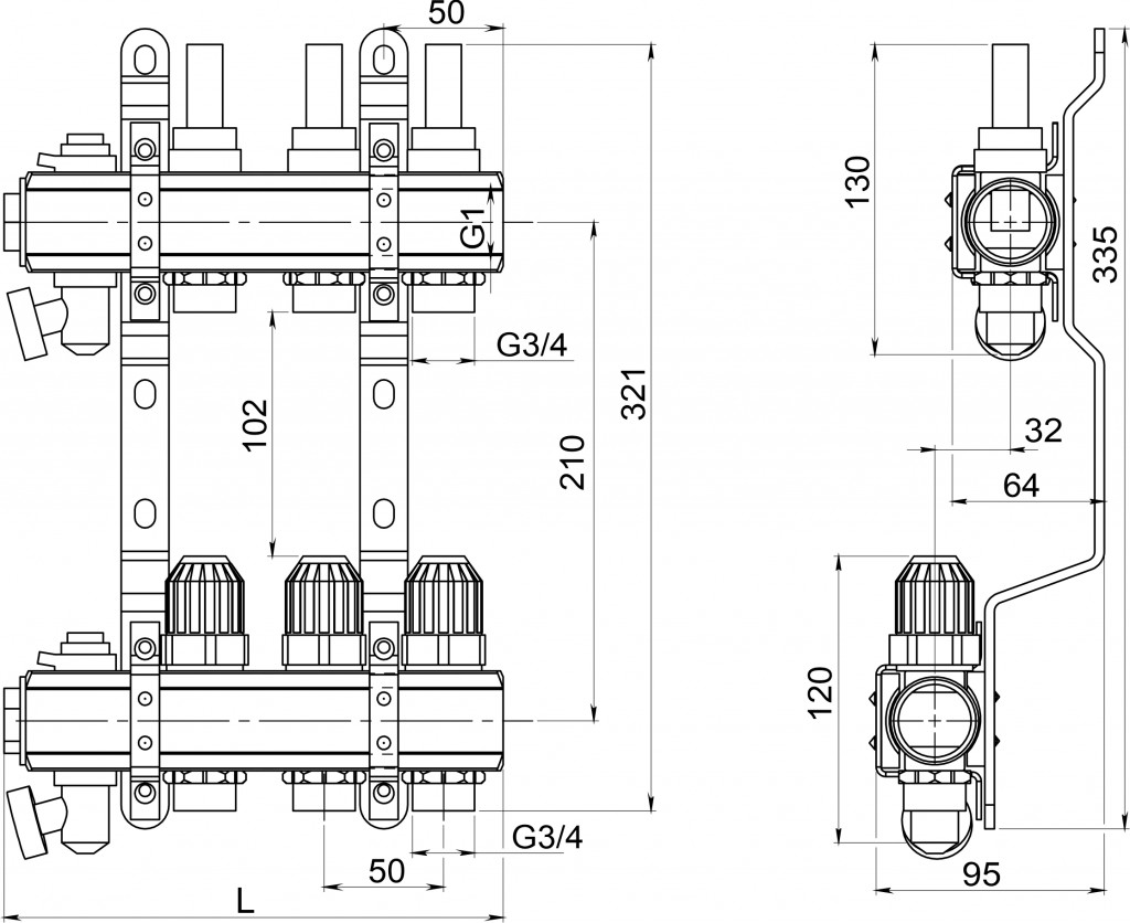 Rozdělovač je možné doplnit čerpadlovou sestavou a kulovými kohouty