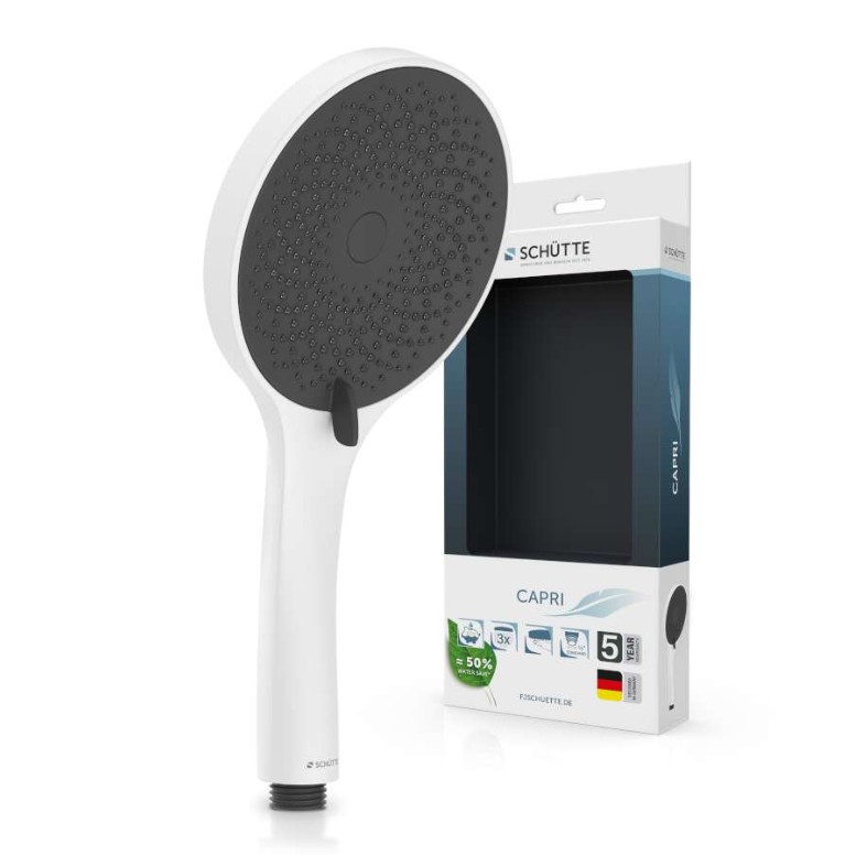 Praktická ruční sprcha CAPRI v elegantním matném bílo/antracitovém provedení kombinuje moderní design s vysokou funkčností. Díky tryskám s ochranou proti vodnímu kameni zůstává sprcha snadno čistitelná a průtok vody je stabilní i při dlouhodobém používání.