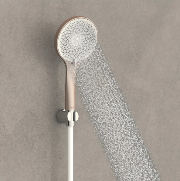 Elegantní ruční sprcha CAPRI v jemném matně růžovo-bílém provedení přináší do vaší koupelny moderní design a každodenní pohodlí. Díky tryskám s ochranou proti vodnímu kameni se snadno čistí a zajišťuje dlouhou životnost i stabilní proud vody.
