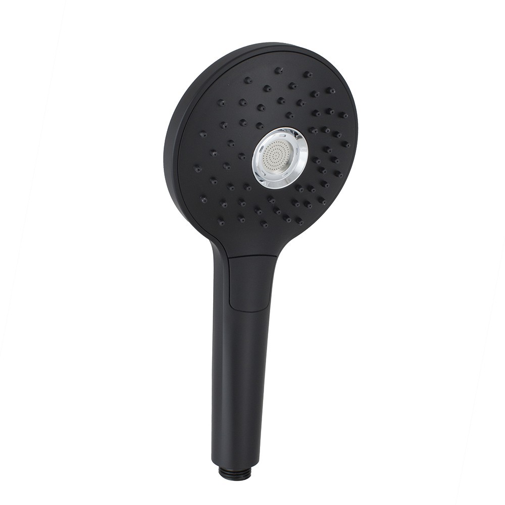 Moderní černá sprchová hlavice se 3 režimy vodního proudu (sprej, masáž, sprej+masáž), které lze měnit tlačítkem v rukojeti. Vyrobeno z odolného a estetického ABS plastu.