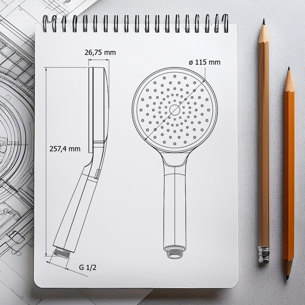 Popis: Černá matná sprchová hlavice AWD INTERIOR se širokou hlavicí o průměru 115 mm je moderním a elegantním řešením pro koupelny v minimalistickém, podkrovním nebo industriálním stylu. Vyrobeno z odolného a voděodolného materiálu ABS, má jednotný matný povrch, který vyzařuje luxusní pocit. Jeho univerzální standardní tvarovka usnadňuje spárování s většinou sprchových hadic. Široká hlava poskytuje pohodlný, rozptýlený proud vody, ideální pro každodenní použití a relaxační sprchy. Jedná se o kombinaci stylu a funkčnosti navržené pro náročné uživatele.