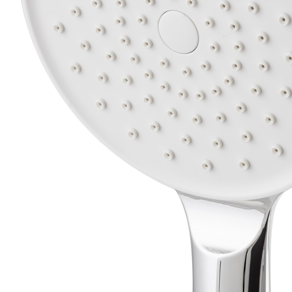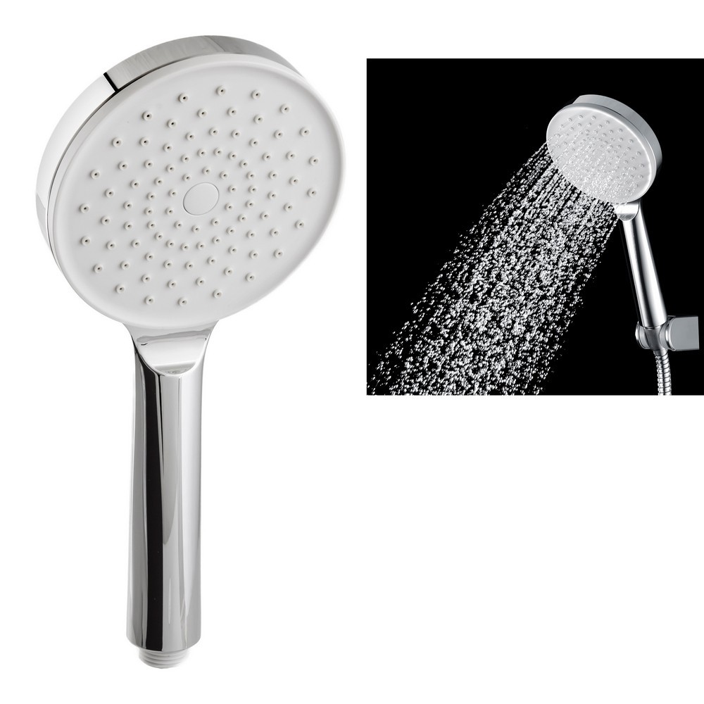 Popis: Stříbrná sprchová hlavice AWD INTERIOR se širokou hlavicí o průměru 115 mm je elegantním a funkčním doplňkem do každé koupelny. Vyrobeno z odolného, voděodolného ABS materiálu, má vysoce lesklý stříbrný povrch a vytříbený estetický vzhled. Bílý střed hlavy dodává jemný, klasický nádech. Jeho univerzální tvarovka standardní velikosti zajišťuje snadnou kompatibilitu s většinou sprchových hadic. Větší průměr hlavy poskytuje široký a pohodlný proud vody, ideální pro chvíle relaxace ve sprše. Jedná se o směs elegance a funkčnosti navržená pro náročné uživatele.