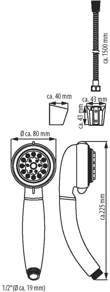 - Standardní připojení ½″ (Ø cca 1,9 cm)
