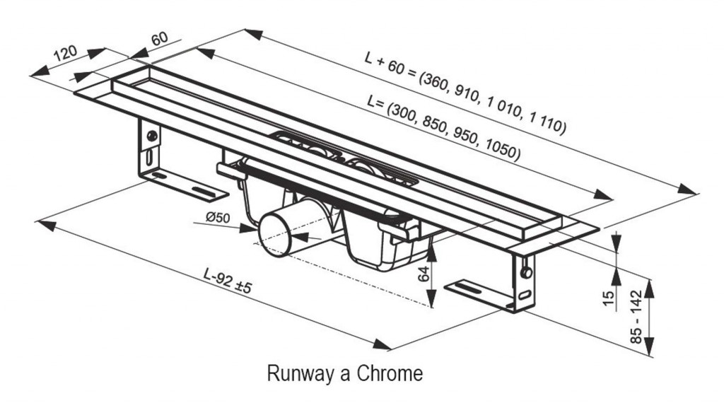 - zdvojená zápachová uzávěra, výška: 50 mm