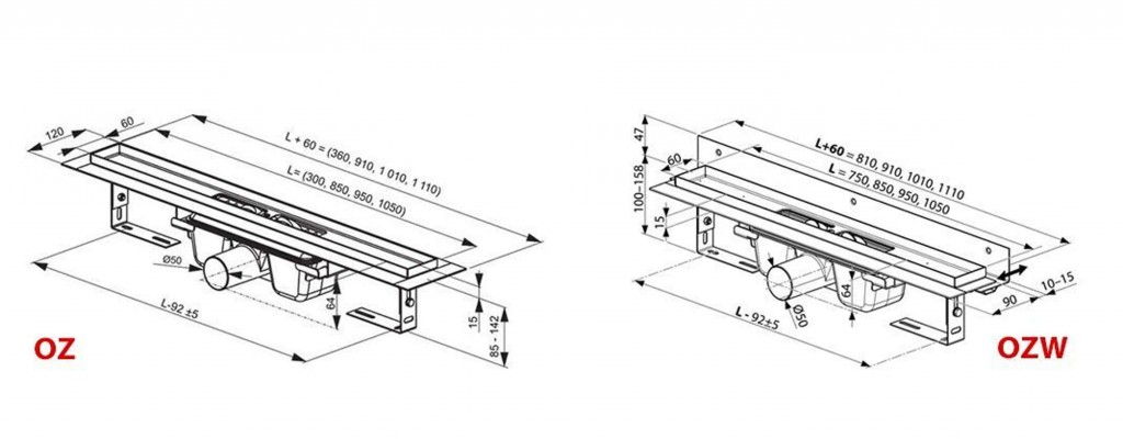 - zdvojená zápachová uzávěra, výška: 50 mm