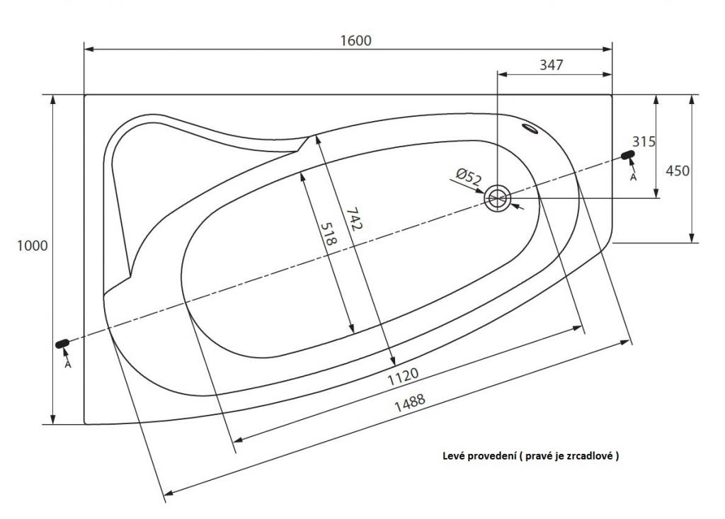 Asymetrická akrylátová vana SICILIA pravá je dodávaná včetně nastavitelných nožiček.