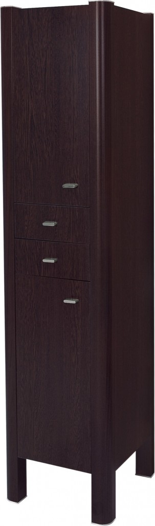 Stojící sloupek IRYDA s dvířky i zásuvkami doplněná kovovými detaily. Možnost montáže univerzálního koše na prádlo, který není součástí tohoto produktu a je potřeba dokoupit.