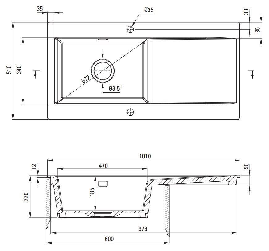 - rozměry: délka 1010 mm, šířka 510 mm a výška 220 mm