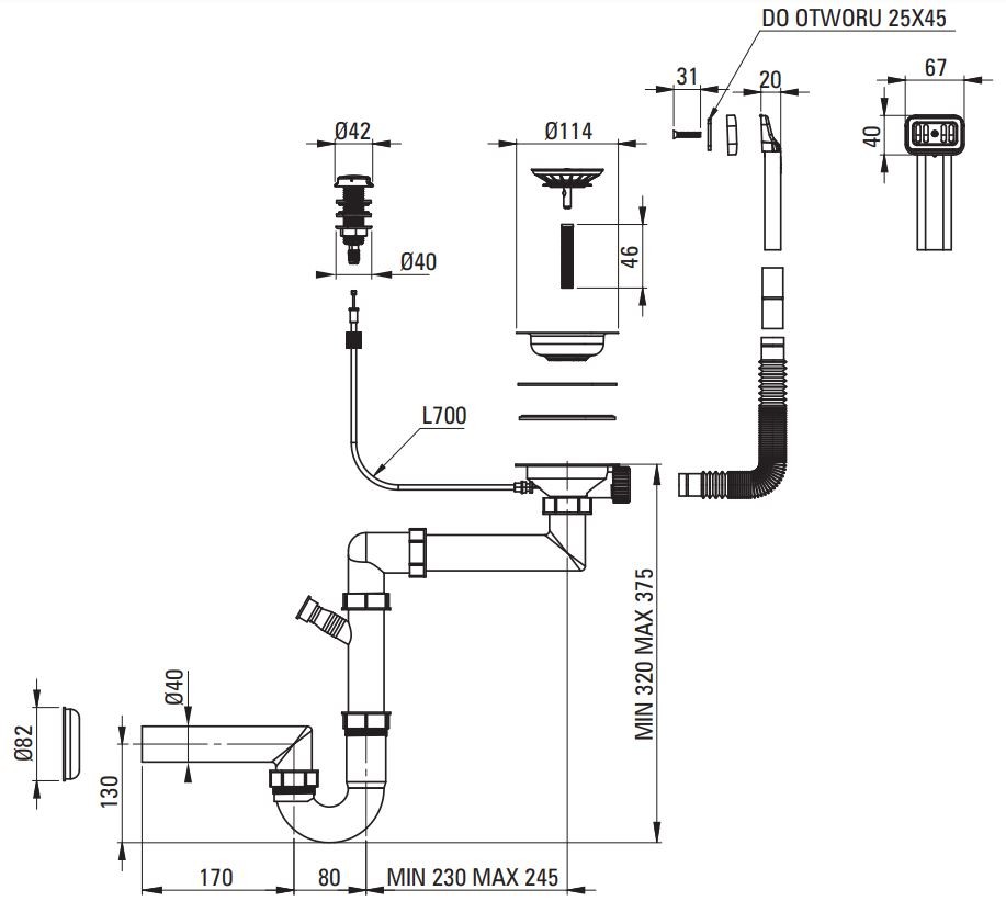 - prostorově úsporný sifon Space-Saver pro usnadnění např. třídění odpadu