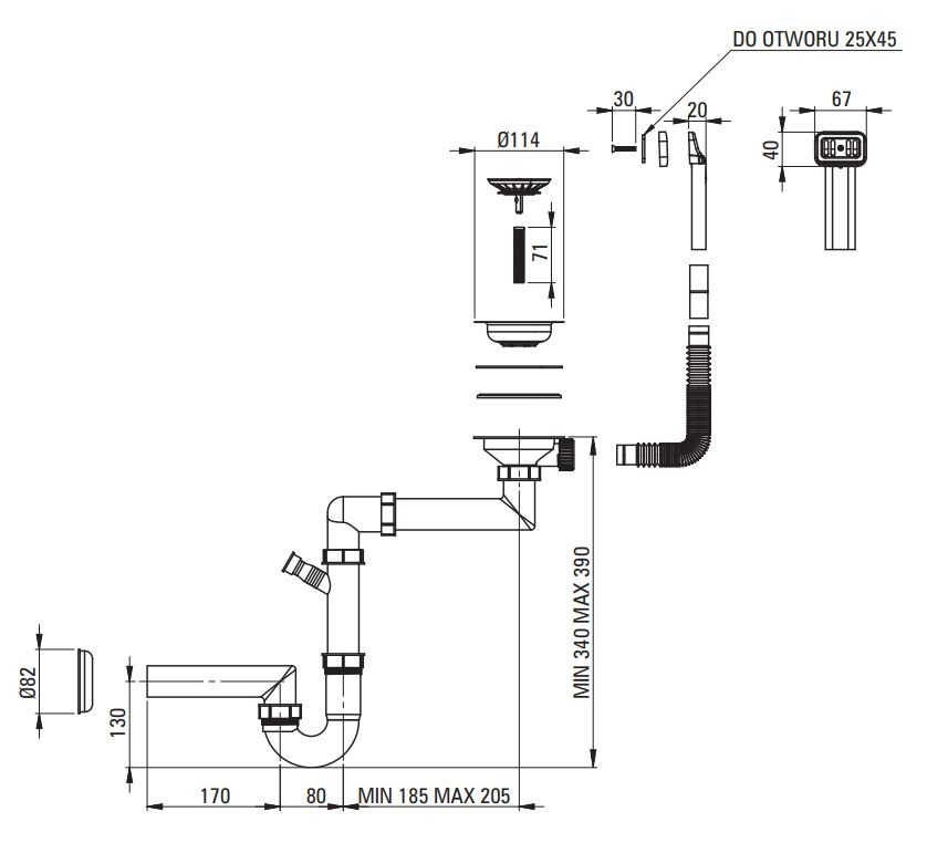 - prostorově úsporný sifon Space-Saver pro usnadnění např. třídění odpadu