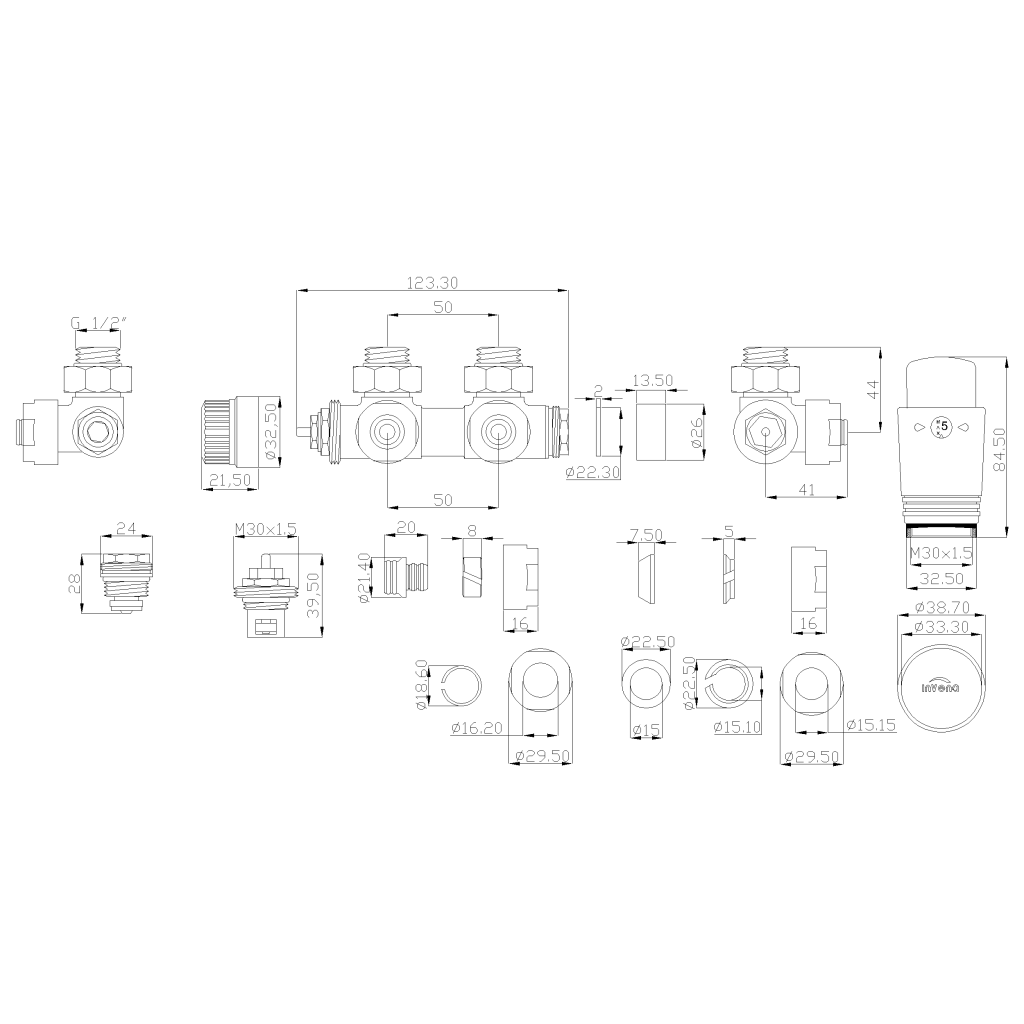 Pro změnu polohy ventilu radiátoru DUOPLEX zprava doleva použijte nástrčné klíče: pro přívodní ventil velikost klíče 19, pro vratný ventil velikost klíče 17. Rohový otočný ventil, použití: pro připojení koupelnového radiátoru v měděných nebo PEX instalacích, vlevo nebo vpravo. Sada obsahuje: 1/2 spojky pro radiátory z mědi 15 mm a PEX 16 mm, termostatickou hlavici M30×1,5.