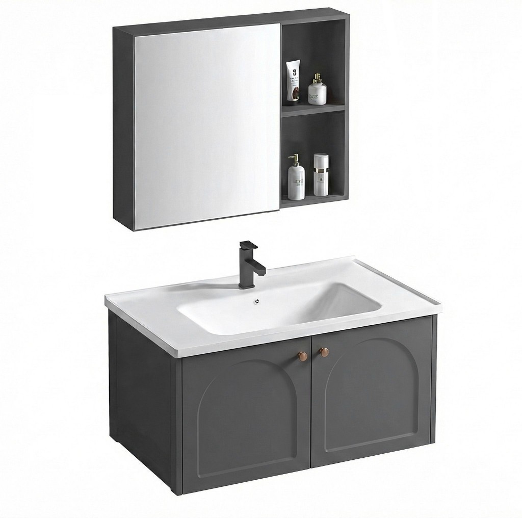 Optimalizujte prostor ve své koupelně díky koupelnovému nábytkovému setu Rea Denver. Jedná se o praktické řešení, které spojuje každodenní funkčnost s dalším úložným prostorem a usnadňuje organizaci i v menších místnostech. Kompaktní konstrukce zajišťuje, že se set vejde téměř do každé koupelny a nabízí potřebný komfort každý den.Náš koupelnový nábytkový set nabízí řadu praktických výhod:Dvojitá úložná zóna – skříňka pod umyvadlem a zrcadlová skříňka umožňují pohodlné uspořádání kosmetiky a koupelnových drobností. Korpus nábytku je vyroben z lehkého plastuZávěsná skříňka – usnadňuje přístup k podlaze při úklidu a pomáhá udržovat hygienu v celé místnosti Velké zrcadlo – praktické zrcadlo umístěné na dvířkách horní skříňky zajišťuje snadný přístup ke kosmetice uložené na policích Keramické umyvadlo – hladký povrch se snadno udržuje v čistotě a je odolný vůči každodennímu používáníKlasické úchytky ve světle měděné barvě – představují praktický akcent, který usnadňuje otevírání čel s jemným frézováním Koupelnový nábytkový set Rea Denver je určen pro osoby hledající hotová a jednoduchá řešení. Kombinace plastových skříněk s keramickým umyvadlem vytváří lehkou konstrukci, která zajišťuje potřebnou funkčnost a úložný prostor v koupelně.