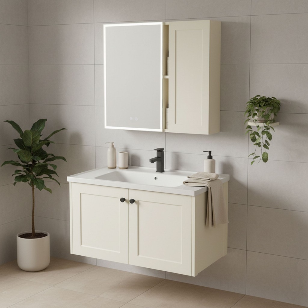 Oceňte eleganci a moderní styl ve své koupelně díky koupelnovému nábytku Rea Monti 60 v jedinečné barvě Creme. Funkční kombinace skříňky pod umyvadlo, umyvadla a zrcadlové skříňky promění vzhled interiéru. Sestava je navržena tak, aby maximálně využila dostupný prostor při zachování lehkého a estetického vzhledu.Naše koupelnové skříňky nabízejí řadu výhod:Závěsná skříňka pod umyvadlo, která opticky zvětšuje koupelnu a usnadňuje úklid.Dekorativní frézované čelní plochy dodávající nábytku jedinečný charakter.Černé úchytky jako výrazný kontrast ke krémovému odstínu.LED zrcadlo s funkcí anti-fog zajišťující dokonalou viditelnost bez zamlžení.Keramické umyvadlo v balení, snadno udržovatelné.Doplňková skříňka nad umyvadlo pro přehledné uložení kosmetiky. Koupelnový set Rea Monti 60 je ideální volbou pro moderní a komfortní koupelnu.