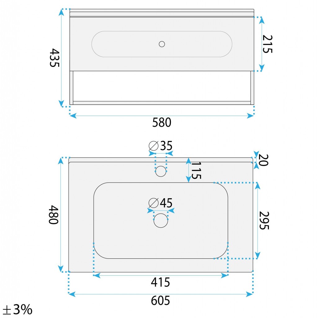 Koupelnová sestava nábytku River je kompletní řešení navržené pro funkční uspořádání umyvadlové zóny. Sestava zahrnuje tři prvky: závěsnou skříňku pod umyvadlo, dedikované keramické umyvadlo a horní skříňku se zrcadlem. Celek tvoří závěsný systém připravený k montáži.Skříňka pod umyvadlo – závěsný modul nabízející praktický úložný prostor. Je vybaven zásuvkou s vnitřním organizérem a otevřenou spodní policí na doplňky. Korpus je vyroben z lehkého plastu.Keramické umyvadlo – zapuštěný model, ideálně přizpůsobený rozměrům skříňky. Má standardní montážní otvor, určený pro instalaci stojánkové baterie.Skříňka se zrcadlem – závěsný prvek, který spojuje funkci zrcadla s dalším místem na kosmetiku díky policím.Konstrukce a materiál – sestava kombinuje klasické keramické umyvadlo s nábytkovými korpusy z plastu, což zajišťuje nízkou hmotnost jednotlivých částí.Nástěnná montáž – všechny prvky sestavy jsou určeny k zavěšení, což usnadňuje přístup k podlaze pod nábytkem.Sestava River je návrh pro osoby hledající hotová a jednoduchá řešení. Kombinace plastových skříněk s keramickým umyvadlem vytváří lehkou konstrukci, která poskytuje potřebnou funkčnost a úložný prostor v koupelně.