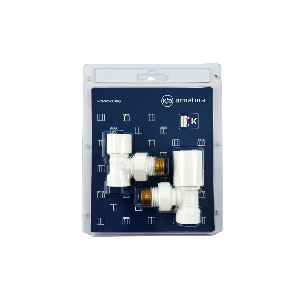 Tento radiátorový set KOMFORT PRO od KFA Armatura je určen pro připojení a regulaci radiátorů k topnému systému (např. ústřednímu vytápění). Sada se skládá z ventilů a příslušenství, které umožňuje ovládání tepla v místnosti pomocí radiátoru.