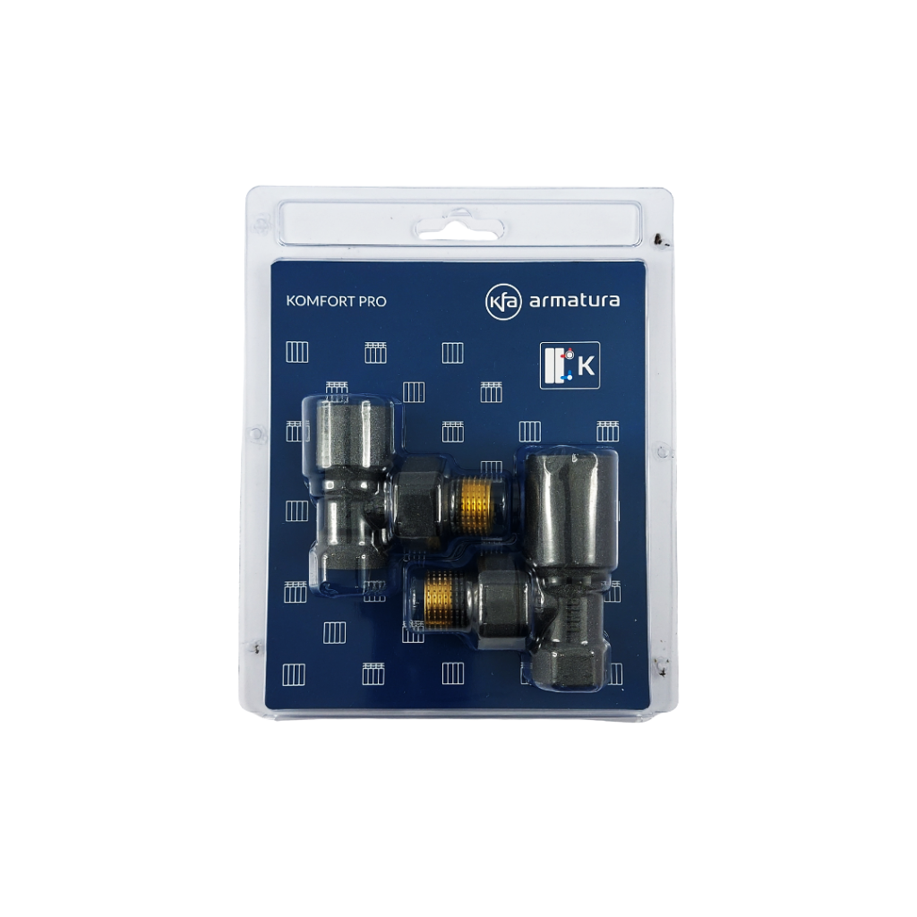 Rohová radiátorová sada Komfort Pro je ideálním řešením pro efektivní a estetické připojení radiátoru v moderních interiérech. Tato sada od výrobce KFA Armatura je navržena pro rohovou montáž, což umožňuje optimální využití prostoru a snadnou instalaci do různých typů místností.