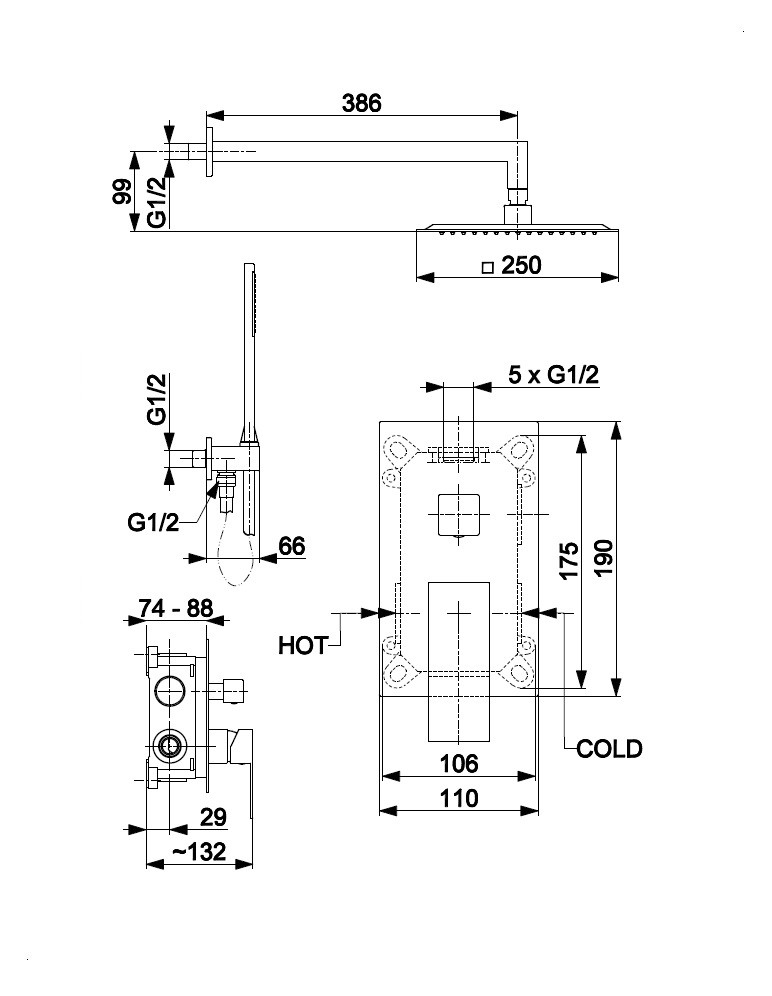 Počet střiků rukojetí sprchy 1