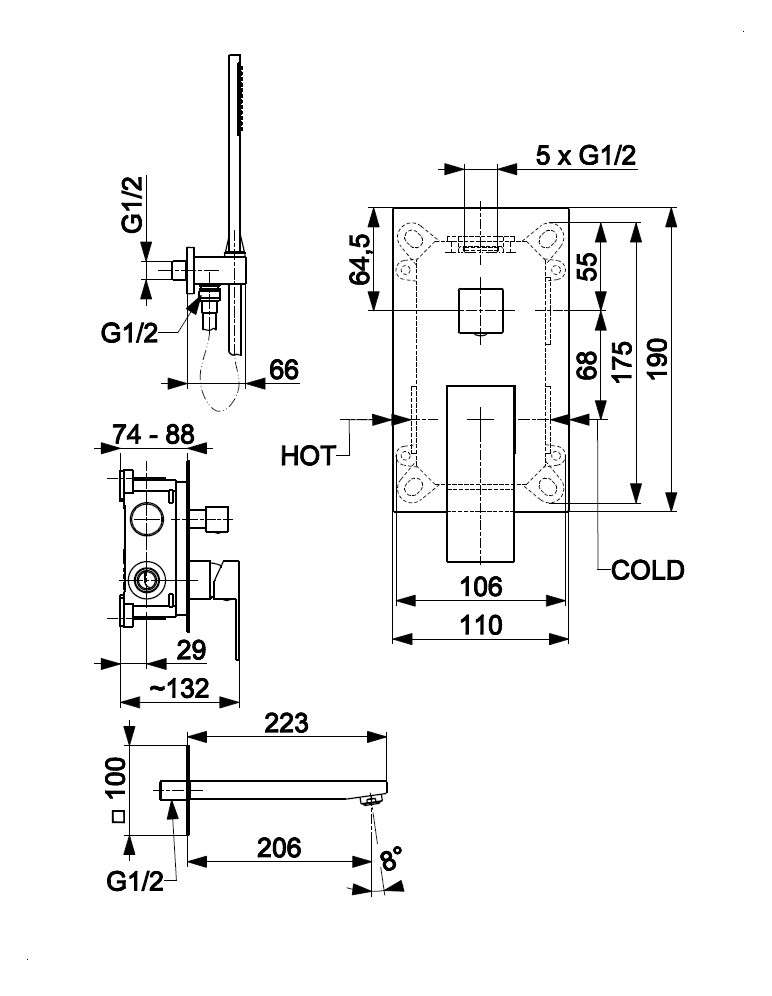 | Průtok vody [l/min] | sprchová rukojeť 15 / vývod 17 |