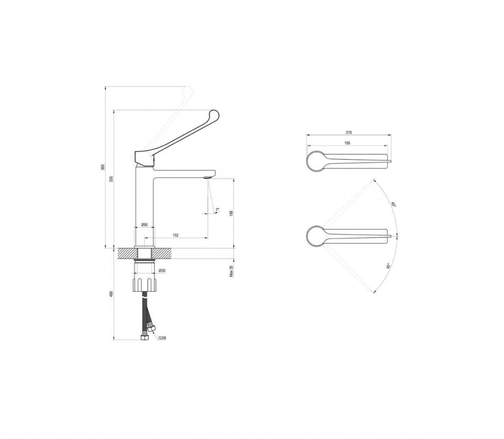 - připojovací hadičky: flexibilní 450 mm, průměr G3/8