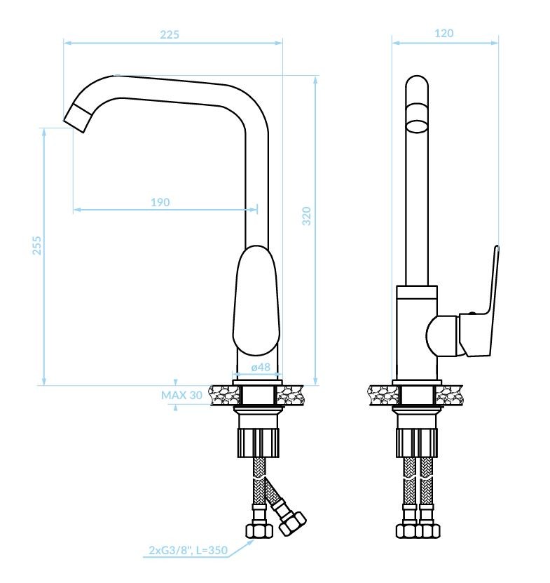 Volně stojící dřezová baterie SAGRA s výtokem ve tvaru L je elegantní a praktickou volbou pro každou moderní kuchyni. Díky pohyblivému výtoku nabízí vysoký komfort při každodenním používání – snadno s ní naplníte větší nádoby nebo pohodlně opláchnete nádobí. Její kompaktní rozměry (výška 127 mm, dosah výtoku 218 mm) z ní dělají ideální řešení pro menší kuchyně či jednodílné dřezy.