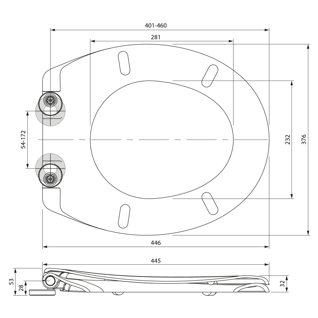 Pomocí hydraulického systému víko i sedátko pomalu dopadají na mísu. Pozvolné sklápění sedátka i víka zaručuje bezpečnost a zabraňuje poškození sedátka i WC mísy/urinálu.
