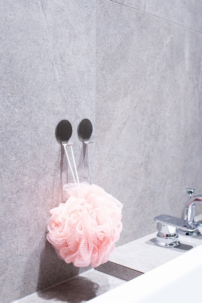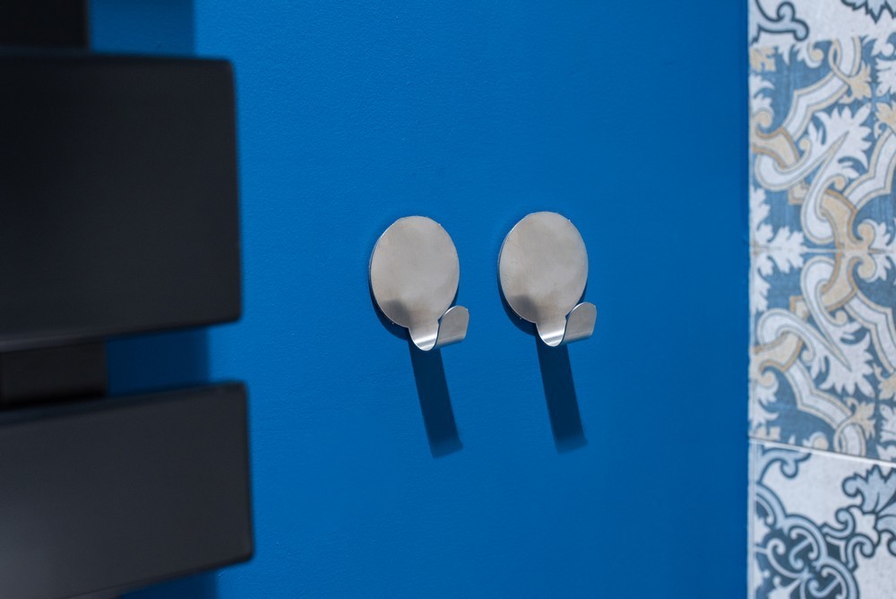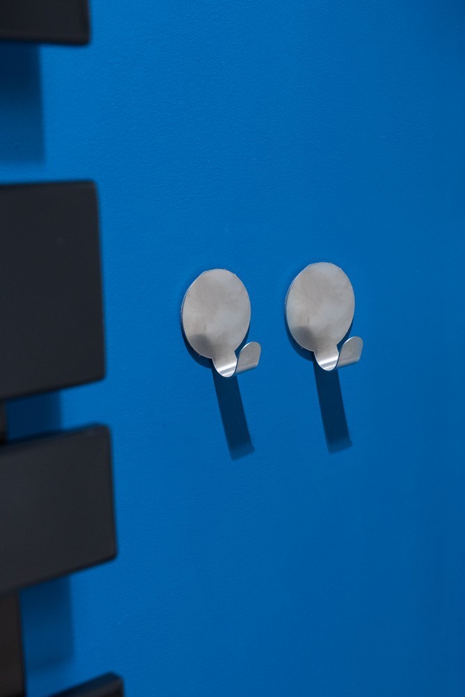 Nástěnný háček z nerezové oceli, který se instaluje na stěnu pomocí 3M lepicí pásky. Sada obsahuje 2 háčky. Maximální nosnost je do 4 kg.