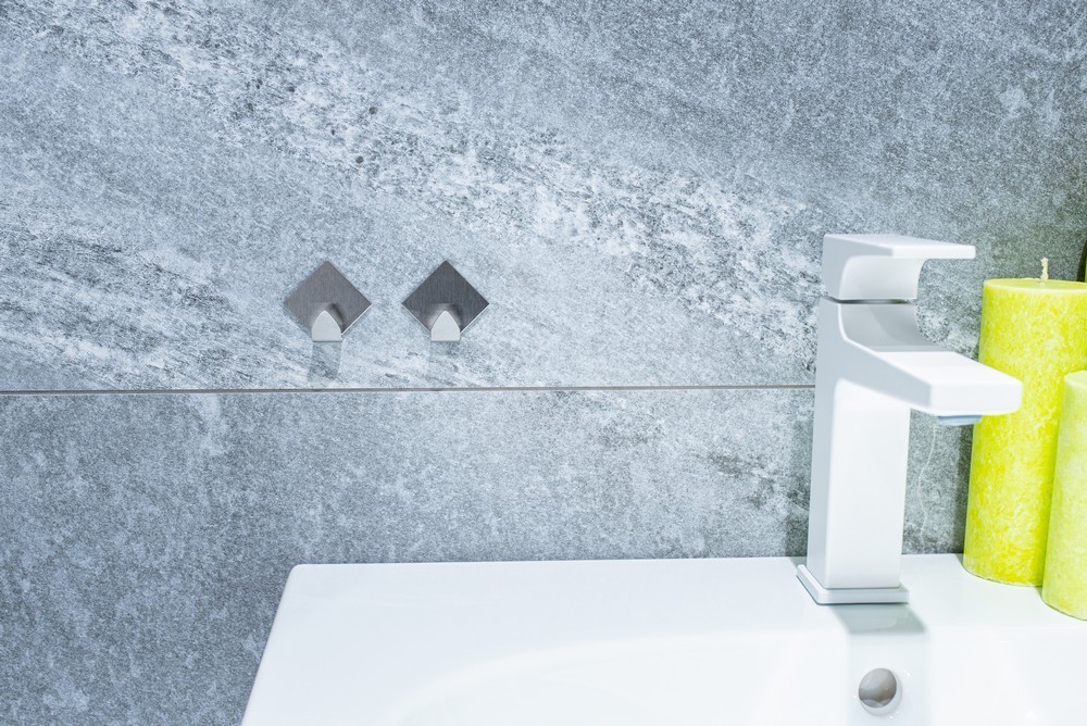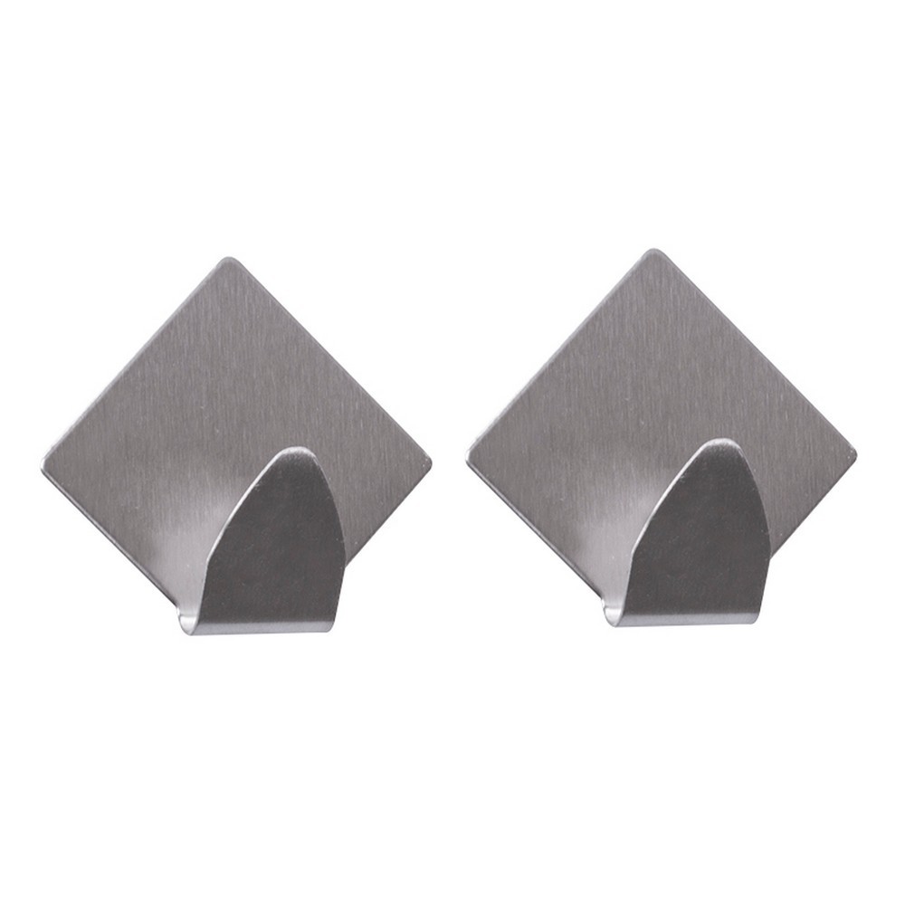 Háček ve tvaru kosočtverce z nerezové oceli, který se připevňuje na stěnu samolepicí páskou. Součástí balení jsou 2 kusy.