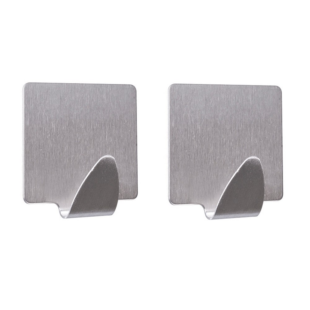 Malý koupelnový věšák obdélníkového tvaru z nerezové oceli, který se instaluje na stěnu pomocí samolepící pásky. Součástí balení jsou 2 věšáky.
