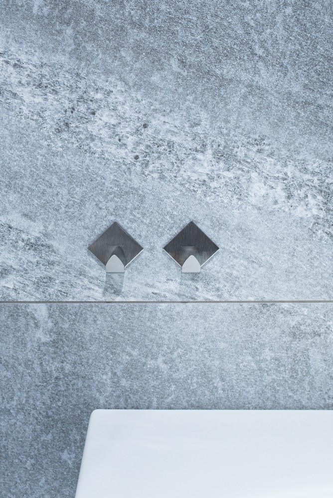 Věšák ve tvaru kosočtverce z nerezové oceli, který se instaluje na stěnu samolepicí páskou. V balení jsou 4 kusy.