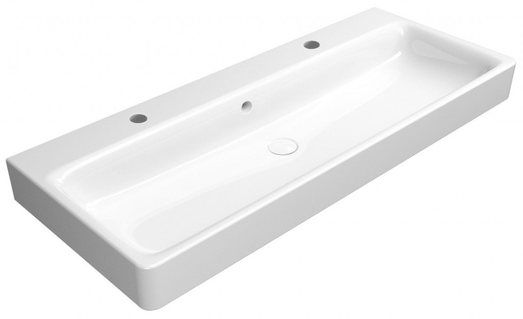 - Hranatá umyvadla s decentně zaoblenými rohy a štíhlou přední hranou