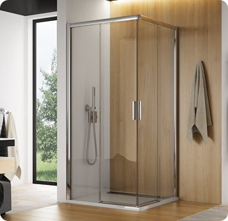 SanSwiss TOP-LINE Rohový vstup s dvoudílnými posuvnými dveřmi - bezbariérový - komplet, 9001900, rám 50 - aluchrom sklo 07 - čiré TBFAC09005007