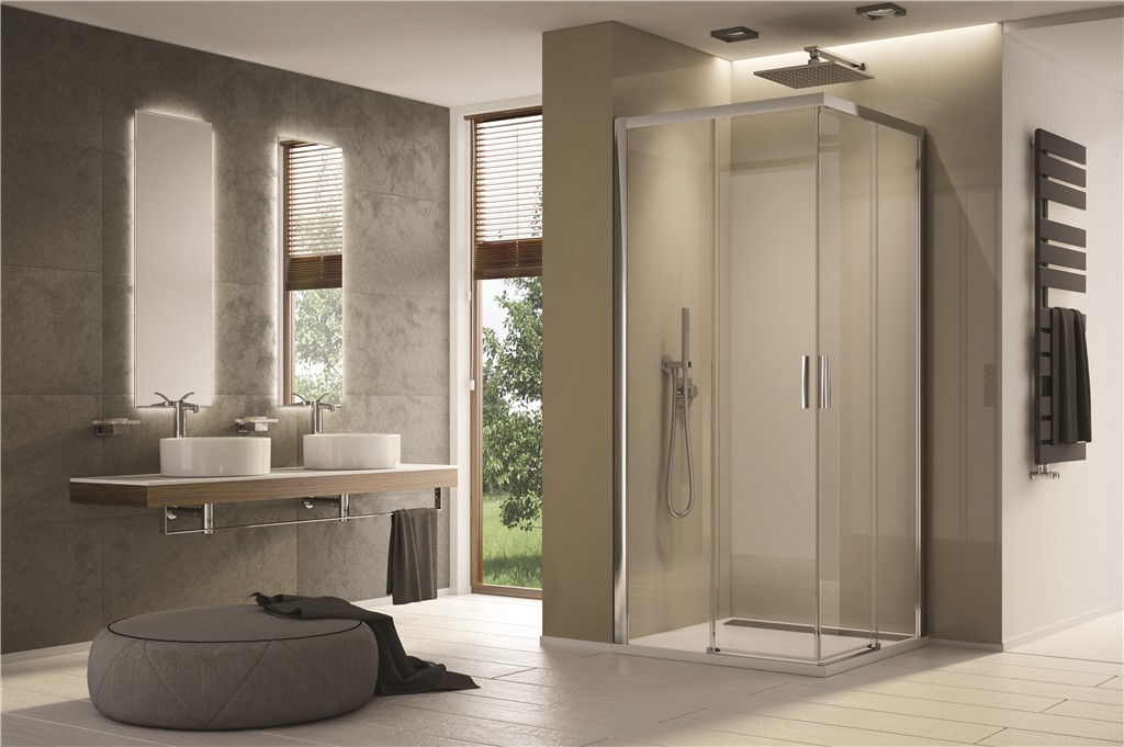 TOP-LINE S TLSAC Rohový vstup s dvoudílnými posuvnými dveřmi - bezbariérový TLSAC0905007