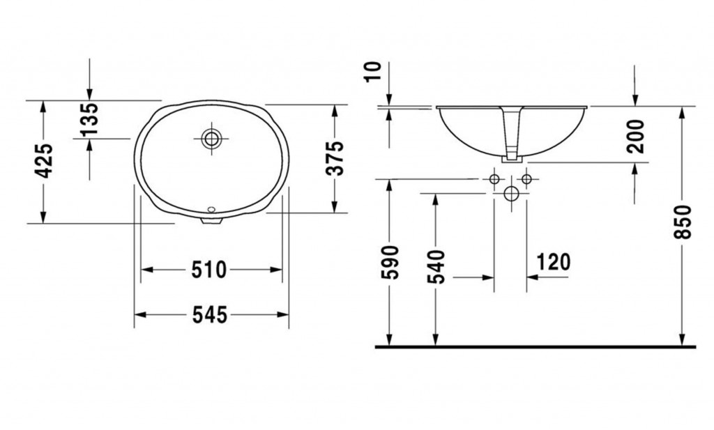 U vestavných umyvadel na zabudování zdola se vztahují údaje o rozměrech na rozměry vnitřní.