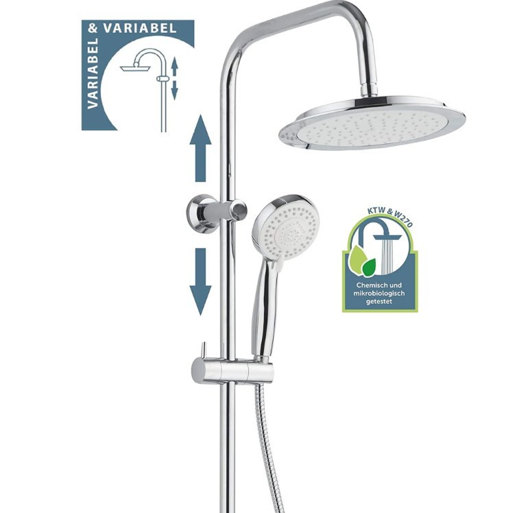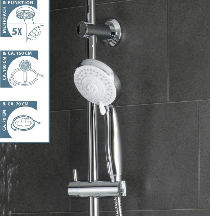 Ideální volbou při rekonstrukci nebo výměně sprchového sloupu, je sprchový sloup Aquastar, který má výškově nastavitelný nástěnný držák. Pro montáž jednoduše použijete stávající otvory ve stěně.