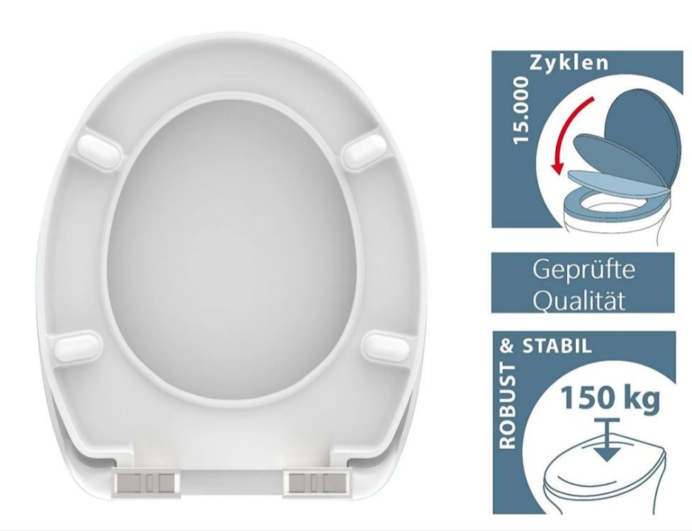 • Díky materiálu Duroplast, který je extrémně odolný proti rozbití a poškrábání, je víko toalety obzvláště odolné