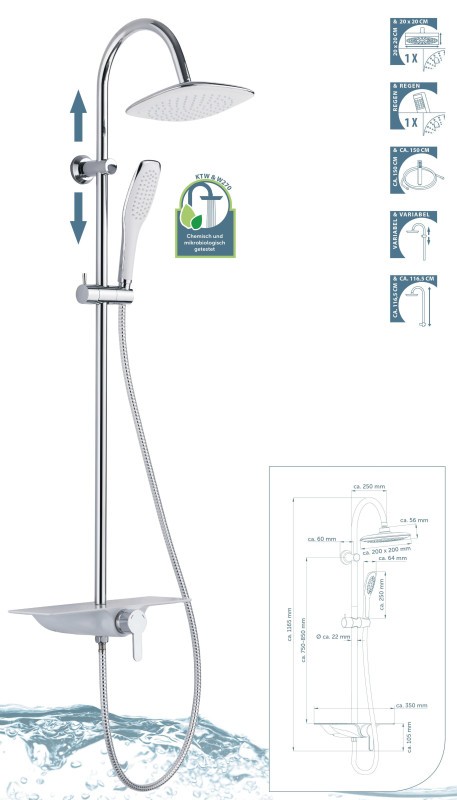 Elegantní závěsný sprchový set Schütte Waterway ve špičkové kvalitě nabízí dokonalý zážitek ze sprchování. Extra velká sprchová hlavice vás zahalí do vodního snu.