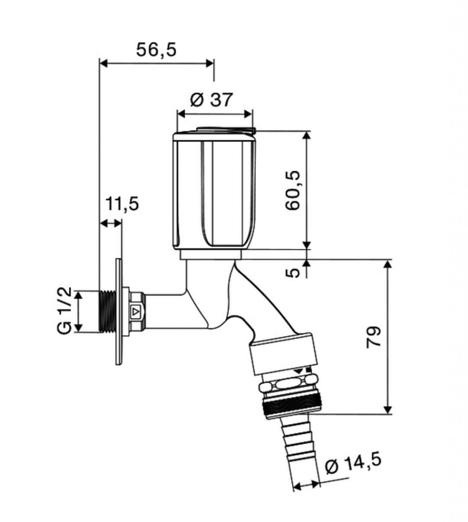 - vývod: hadicové šroubení Ø 14,5 mm (DN 20 G 3/4 vnější závit)