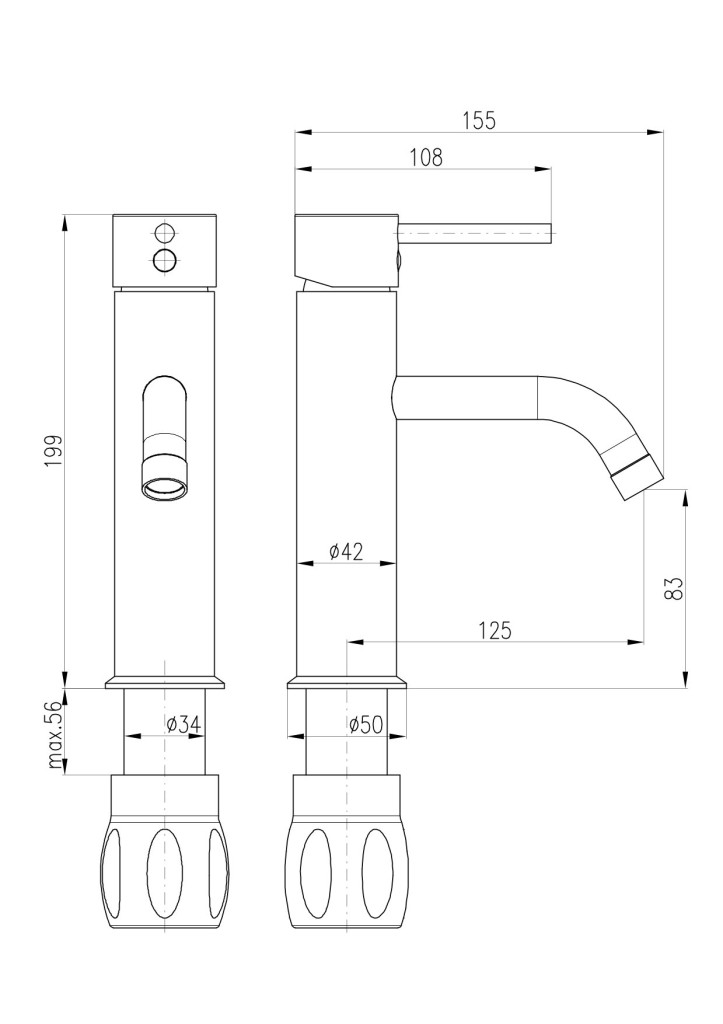Vodovodní baterie umyvadlová stojánková bez otvírání odpadu.