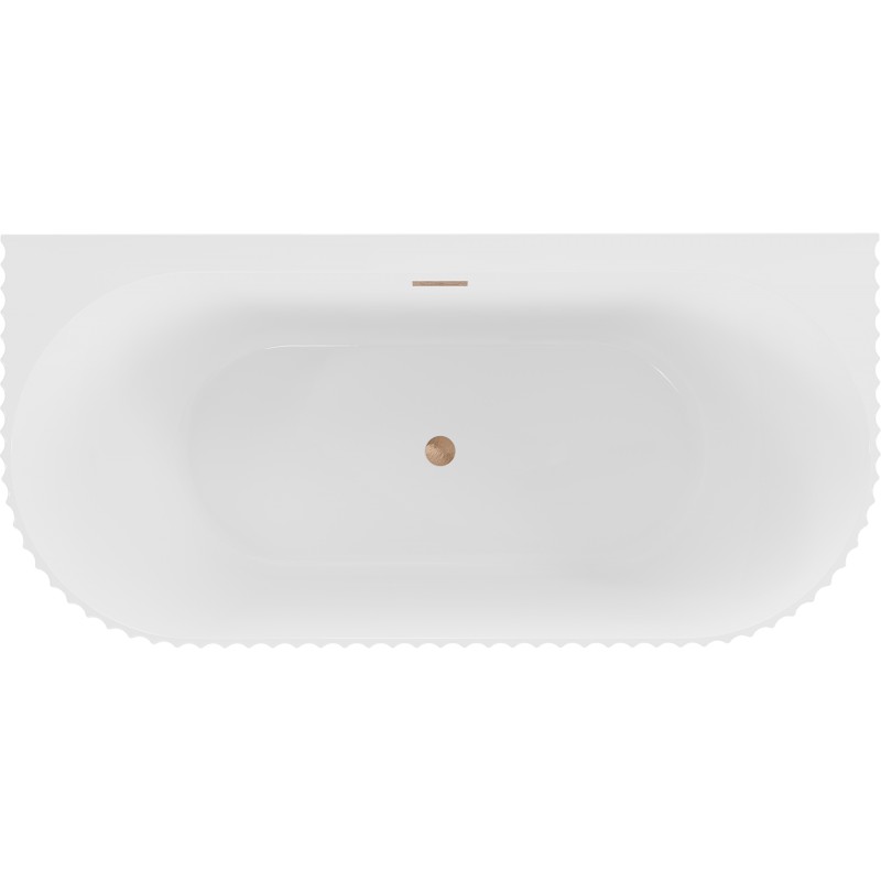 Volně stojící oválná akrylátová vana s instalací ke stěně série SELLA od výrobce MEXEN s přepadem a umístěném odpadu na středu vany. Má moderní design s hladkým povrchem a zvlněným reliéfem po stranách.
