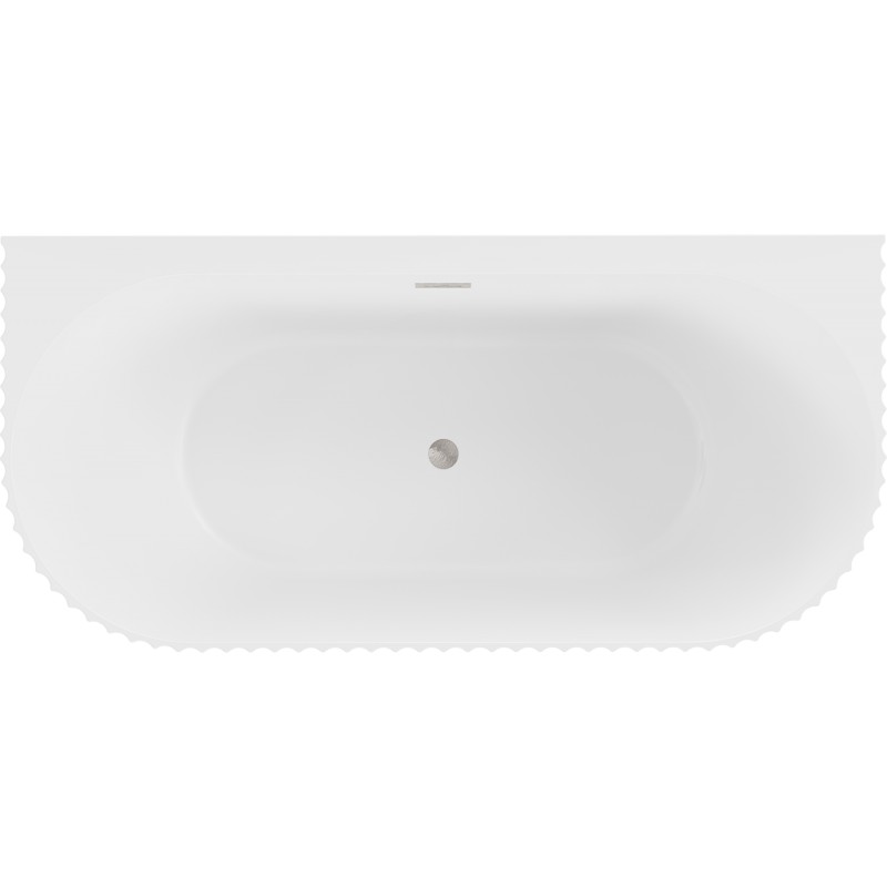 Volně stojící oválná akrylátová vana s instalací ke stěně série SELLA od výrobce MEXEN s přepadem a umístěném odpadu na středu vany. Má moderní design s hladkým povrchem a zvlněným reliéfem po stranách.