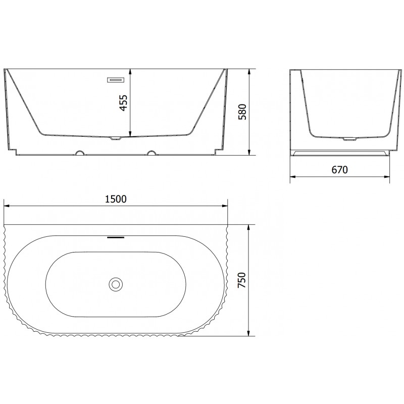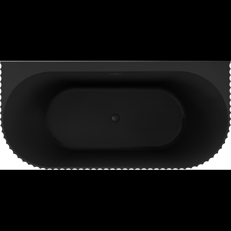 Volně stojící oválná akrylátová vana s instalací ke stěně série SELLA od výrobce MEXEN s přepadem a umístěném odpadu na středu vany. Má moderní design s hladkým povrchem a zvlněným reliéfem po stranách.