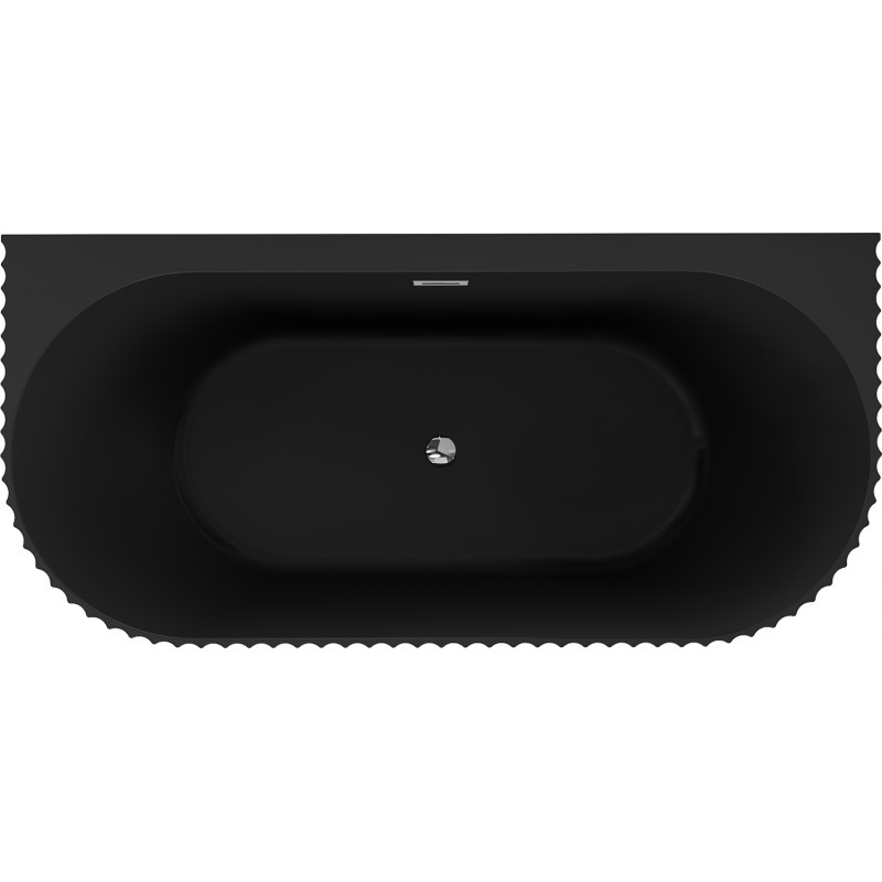 Volně stojící oválná akrylátová vana s instalací ke stěně série SELLA od výrobce MEXEN s přepadem a umístěném odpadu na středu vany. Má moderní design s hladkým povrchem a zvlněným reliéfem po stranách.