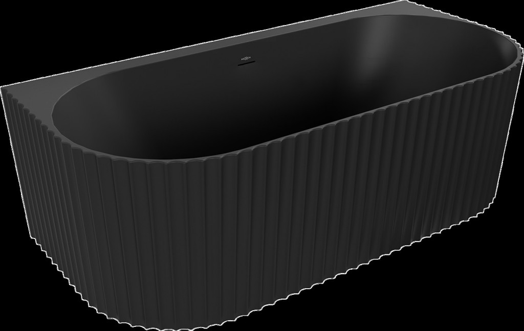 Volně stojící oválná akrylátová vana s instalací ke stěně série SELLA od výrobce MEXEN s přepadem a umístěném odpadu na středu vany. Má moderní design s hladkým povrchem a zvlněným reliéfem po stranách.