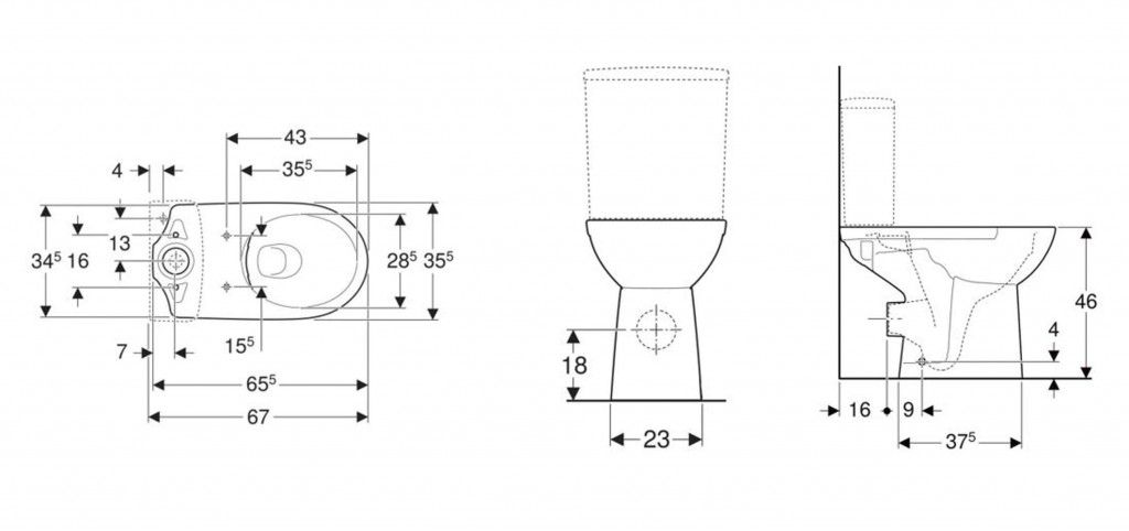 Stojící WC pro splachovací nádržku umístěnou na WC míse