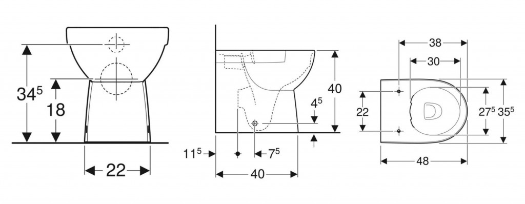 Stojící klozet s hlubokým splachováním, vzadu rovný ke stěně, vícesměrný odpad
