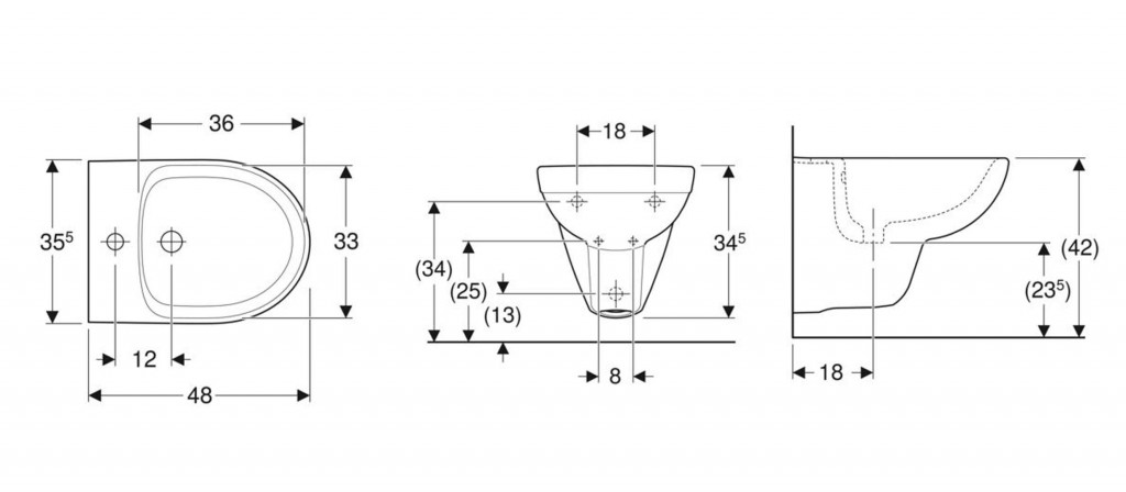 Upevňovací materiál pro závěsná WC a bidety není součástí balení, nutné dokoupit zvlášť.