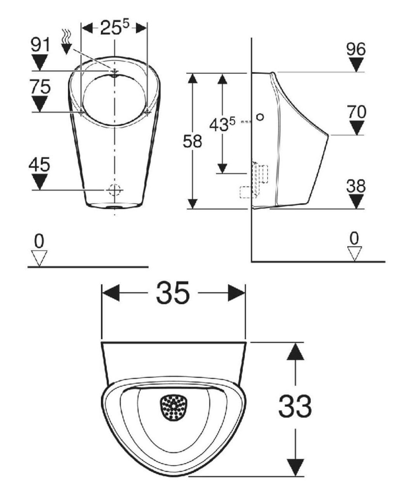 - Vypláchnutí keramiky pisoáru s 0,5 l na spláchnutí zajištěno, při dodržení EN 13407
